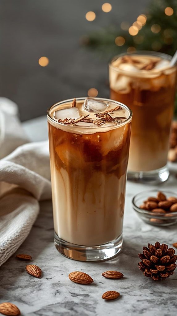 This chilled coffee drink for Christmas is straightforward and reliable. Vanilla softens the coffee, almond milk adds quiet nuttiness, and the drink stays light enough to revisit later.